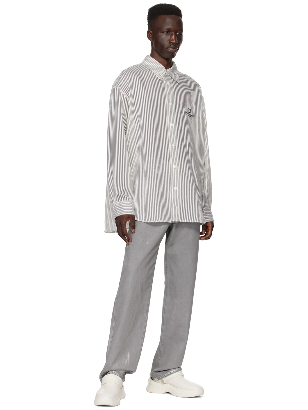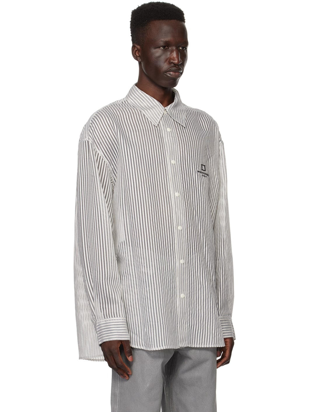 Semi-sheer rayon-blend gauze shirt. Stripes throughout. · Spread collar · Press-stud closure · Logo embroidered at chest · Shirttail hem · Single-button barrel cuffs · Logo plaque at back collar Supplier color: Grey