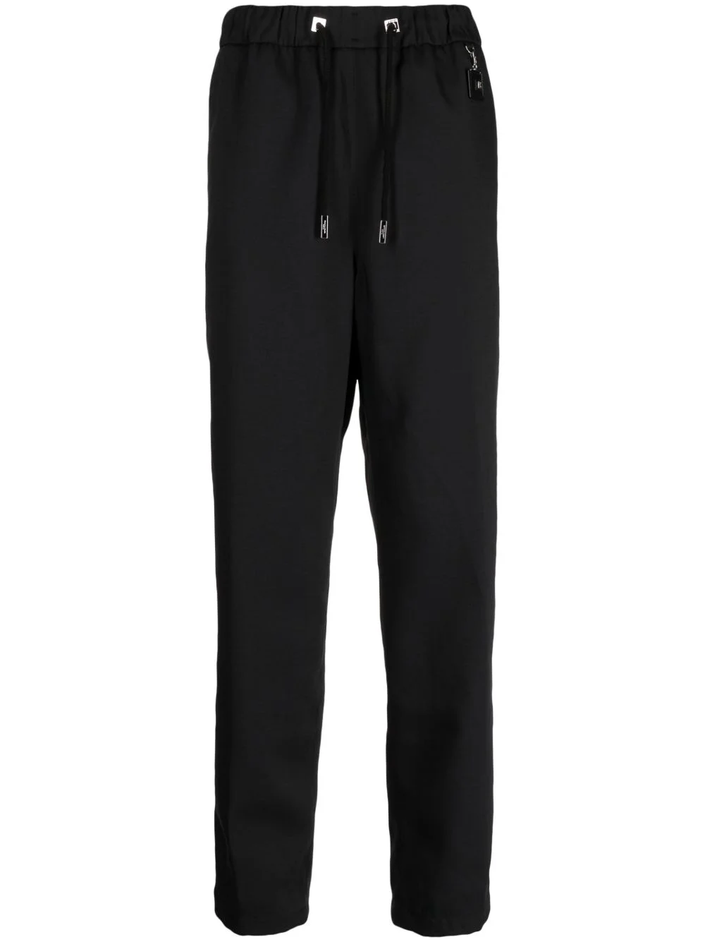 drawstring tapered-leg trousers Highlights - Black - Keyring attachment - Silver-tone hardware - Tapered leg - Elasticated waistband with internal drawstring - Two side inset pockets - Two rear welt pockets - Straight hem Imported Composition Lining: Polyester 100% SIZE & FIT FittingInformation Designed for a tapered leg, offering a loose unrestricted fit over the leg with a closer fit towards the ankle Adjust this piece’s waistband to your preference using the drawstring Made from a midweight non-stretch fabric, this piece offers minimal elasticity when worn This piece fits true to size – take your usual size