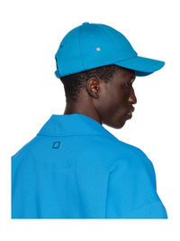 Cotton jersey cap in blue. · Logo embroidered at face and back face · Embroidered eyelets vents at crown · Logo hardware at side · Cinch fastening at back face · Partial cotton twill lining Supplier color: Blue