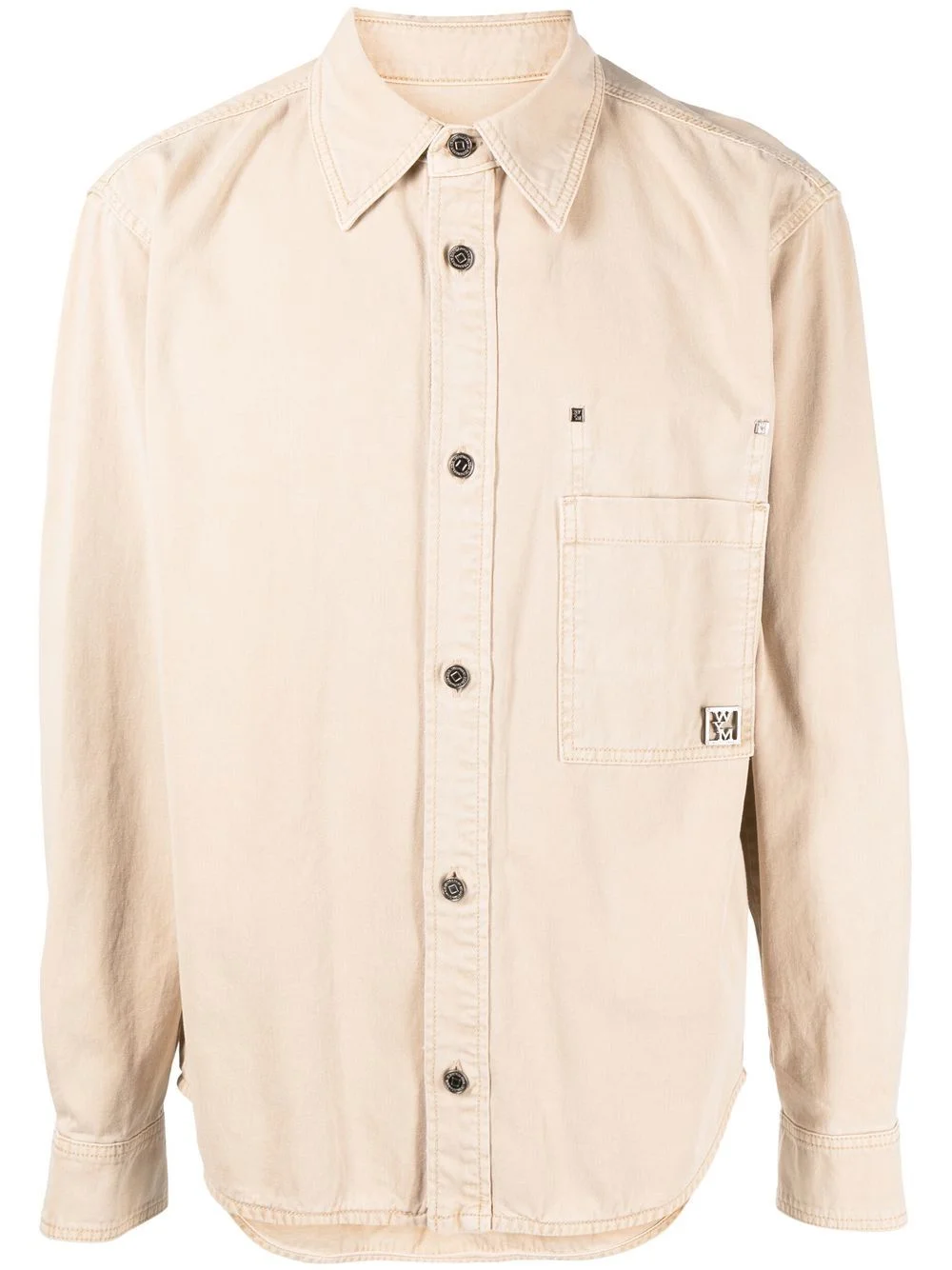 logo-plaque cotton shirt beige cotton logo plaque straight-point collar front button fastening long sleeves buttoned cuffs curved hem Imported Composition Cotton 100% SIZE & FIT Model measurements Height 6 ft 2 in(1.87 m) Bust/Chest 34.25 in(87 cm) Hips 36.22 in(92 cm) Waist 29.52 in(75 cm) FittingInformation This piece fits true to size. We recommend you get your regular size Cut for a loose fit Made with a mid-weight non-stretch fabric Washing instructions Machine Wash