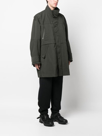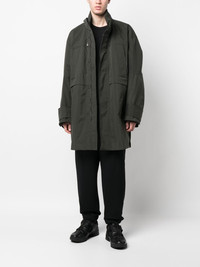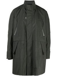 logo-plaque zip-up coat dark grey silver-tone logo plaque front press-stud and zip fastening high neck two zip-fastening chest pockets long sleeves straight hem above-knee length Imported Composition Lining: Polyester 100% Outer: Nylon 100%, Polyester 100% SIZE & FIT Model measurements Height 6 ft 2 in(1.87 m) Bust/Chest 35.82 in(91 cm) Hips 35.43 in(90 cm) Waist 27.95 in(71 cm) FittingInformation This piece fits true to size. We recommend you get your regular size Cut for a loose fit Made with a mid-weight non-stretch fabric Washing instructions Machine Wash