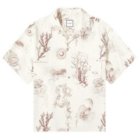 Known for taking wardrobe staples and adding a touch of off-beat design, WOOYOUNGMI has you covered with the Marine Print Vacation Shirt. This soft cotton shirt checks all the boxes for a classic piece with a camp collar, chest pocket and button down closure. What sets it apart? Fine line sketches of sea life float across the fabric, adding vacay vibes to any look. - 100% Cotton - Camp Collar - Chest Button Pocket - Button Down Closure - All-Over Printed Graphic - Dry Clean Only - Metal Logo on Back - Made in Korea