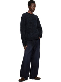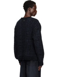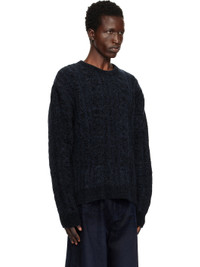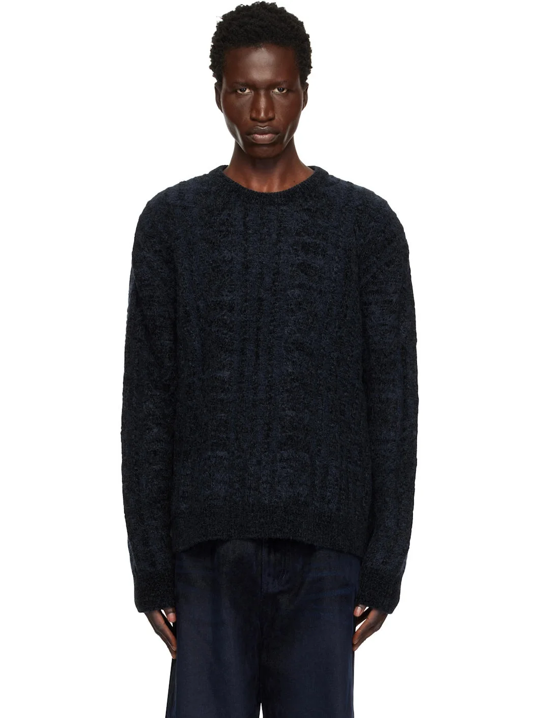 Cable-knit polyester- and mohair-blend sweater. · Rib-knit crewneck, hem, and cuffs · Dropped shoulders · Logo hardware at back collar Supplier color: Navy 74% polyester, 12% mohair, 10% nylon, 4% wool. Made in South Korea 242704M201000