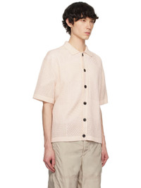 Open-knit cotton shirt. Jacquard check pattern throughout. · Rib-knit spread collar, hem, and cuffs · Button closure · Logo hardware at back collar Supplier color: Ivory 100% cotton. Made in South Korea 251704M192002