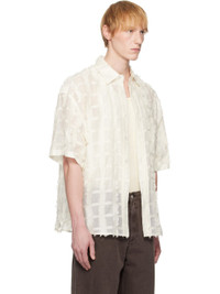 Semi-sheer cotton- and silk-blend gauze shirt. Fil-coupe check pattern throughout. · Spread collar · Button closure · Embroidered logo and patch pocket at chest · Shirttail hem · Logo hardware at back collar Supplier color: Ivory 81% cotton, 19% silk. Made in South Korea 251704M192009
