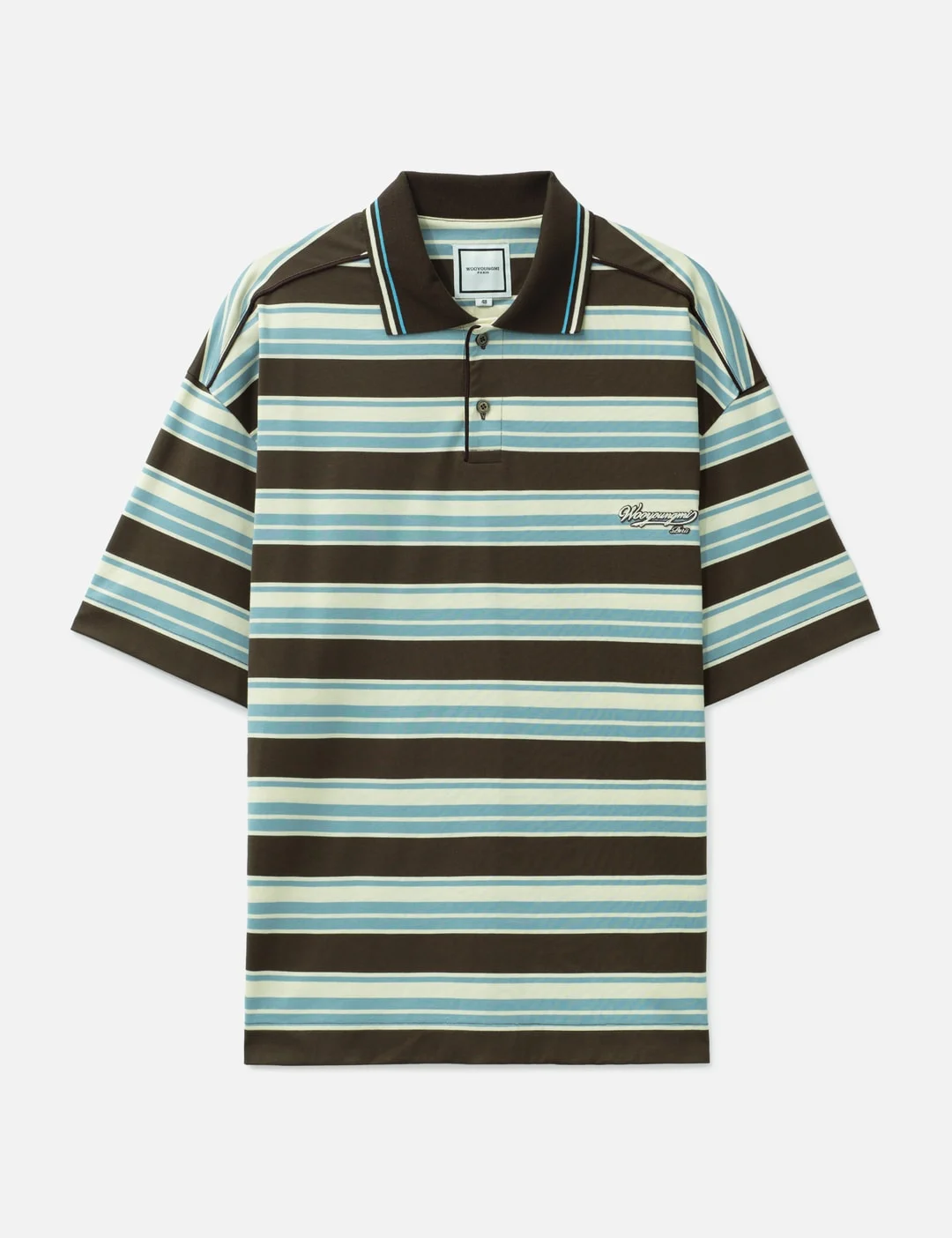 - Wooyoungmi - Striped Polo - Made of cotton - Pointed collar - Half-buttoned closure - Short sleeves - Embroidered brand logo at chest - Trim on side vents - Metallic logo at chest and below back collar - Made in Korea - Color: 776D - Mud - Material: 100% Cotton; Fabric 2: 80% Cotton, 17% Polyester, 3% Spandex - See more Polos and Clothing - Model wears size 48 - Model measures: Height 186cm, Chest 34”/86cm, Waist 28”/71cm, Hip 36”/91cm - Vendor Code: W261TS15