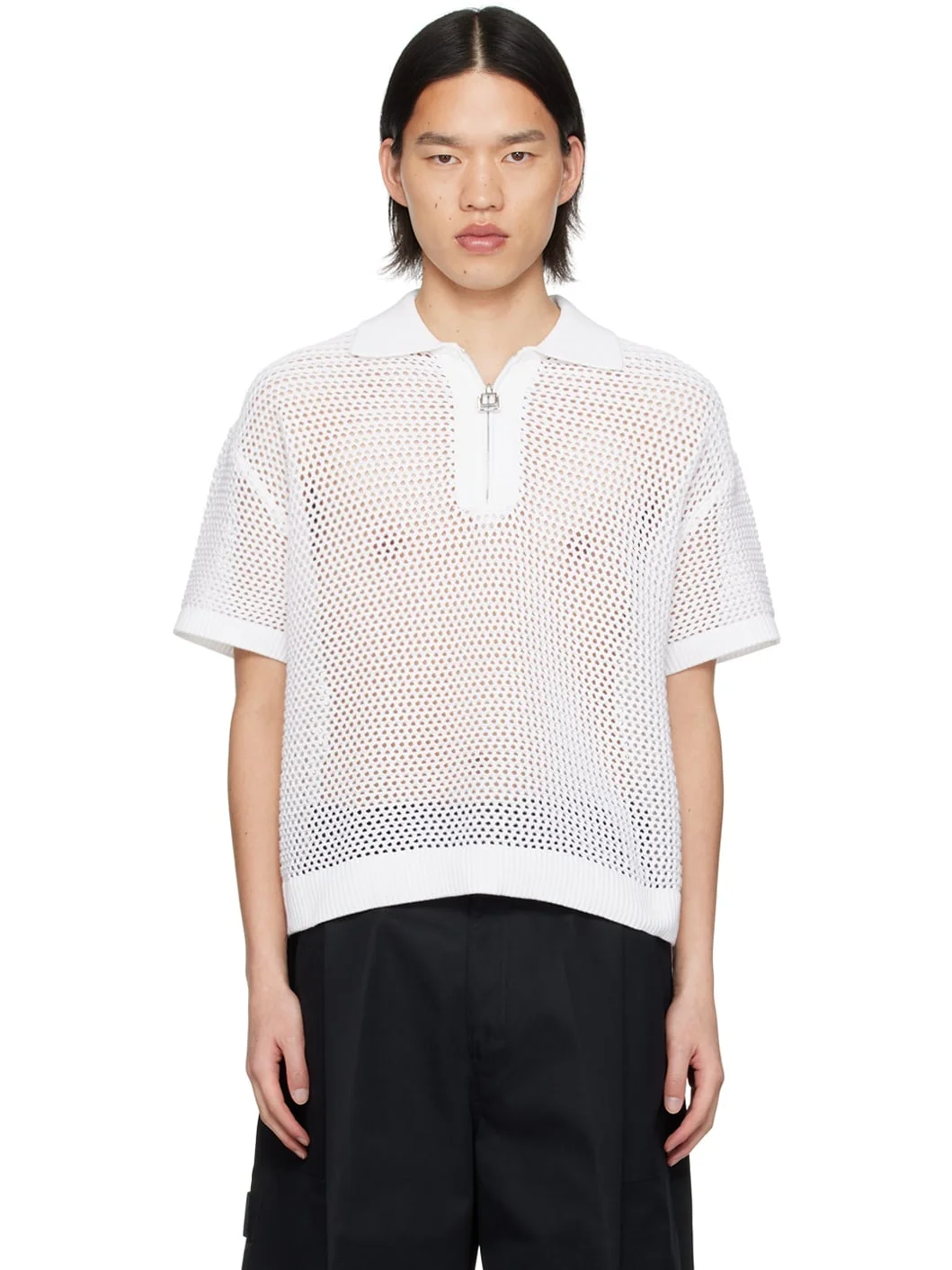 Mesh knit cotton- and nylon-blend polo. · Spread collar · Logo hardware at half-zip closure · Rib knit placket, hem, and cuffs · Logo hardware at back Supplier color: White 69% cotton, 31% nylon. Made in South Korea 241704M212001