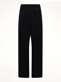 Wooyoungmi's Wool Pleat Trouser in Navy is a sophisticated addition to any wardrobe, offering a blend of modern style and classic tailoring. These trousers are designed to provide both comfort and elegance, making them suitable for various occasions. - Composition: 100% Wool - Classic pleated front for a refined look - Tailored fit with a straight leg silhouette - Versatile navy color for easy pairing - Features side and back pockets for functionality - Zip fly with hook-and-bar closure - Made in South Korea Model is 187 cm and wears size 48 SKU: W261PT07928N
