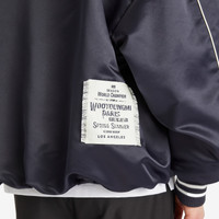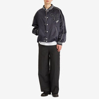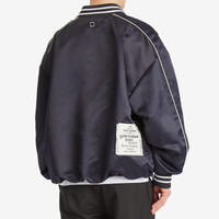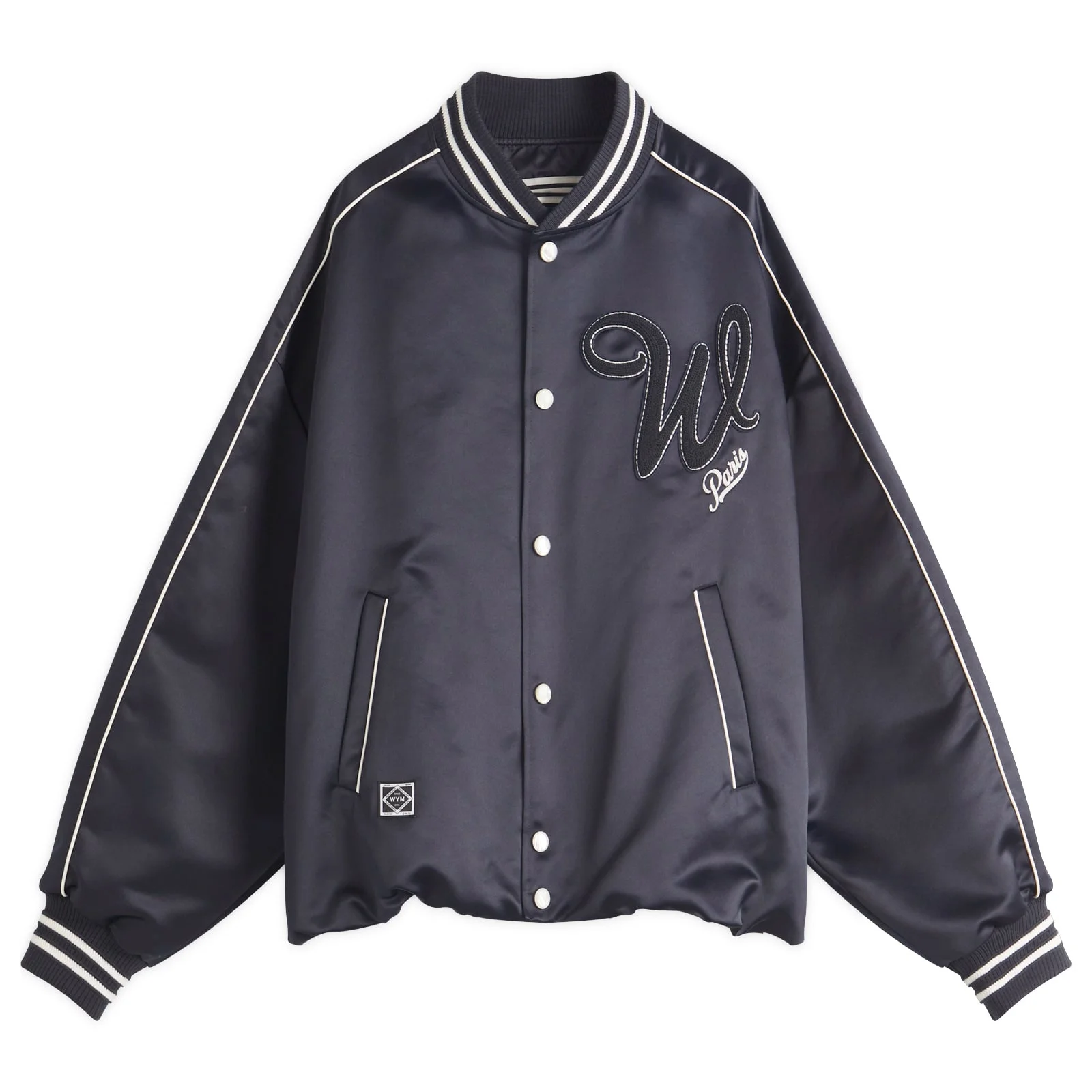 With utilitarian derived detailing at its core, this Wooyoungmi Jacket is cut from a shiny material. With sporty ribbed trims and contrast piping on the sleeves, a varsity inspired ‘W’ monogram sits on the chest. - 100% Polyester - Shawl Collar - Snap Button Closure - Side Pockets - Ribbed Trims