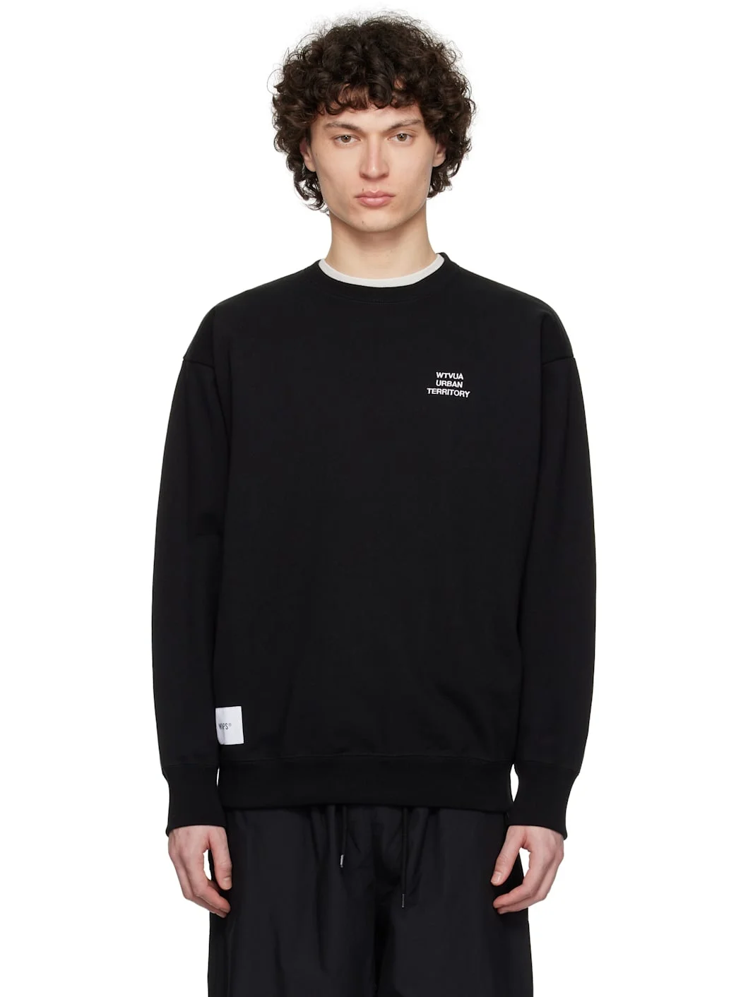French terry sweatshirt. · Rib-knit crewneck, hem, and cuffs · Text embroidered at chest · Logo patch at front hem · Logo flag at side seam · Dropped shoulders Supplier color: Black 100% cotton. Made in Japan 252241M204001
