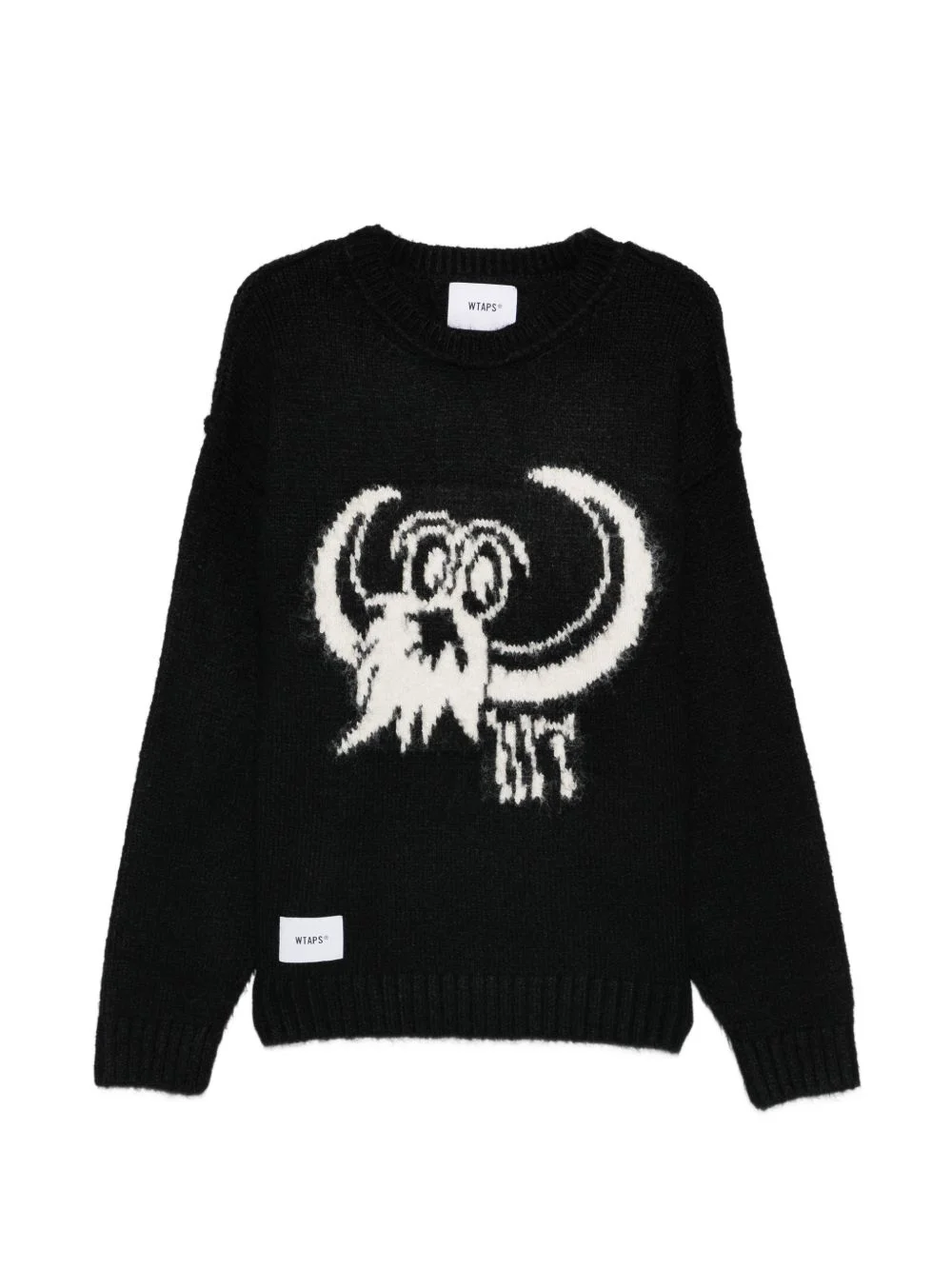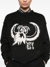 graphic crew-neck sweater Highlights - Black - Crew neck - Ribbed trims - Long sleeves Imported Composition Polyester 75%, Nylon 18%, Wool 6%, Polyurethane 1% Washing instructions Dry Clean Only