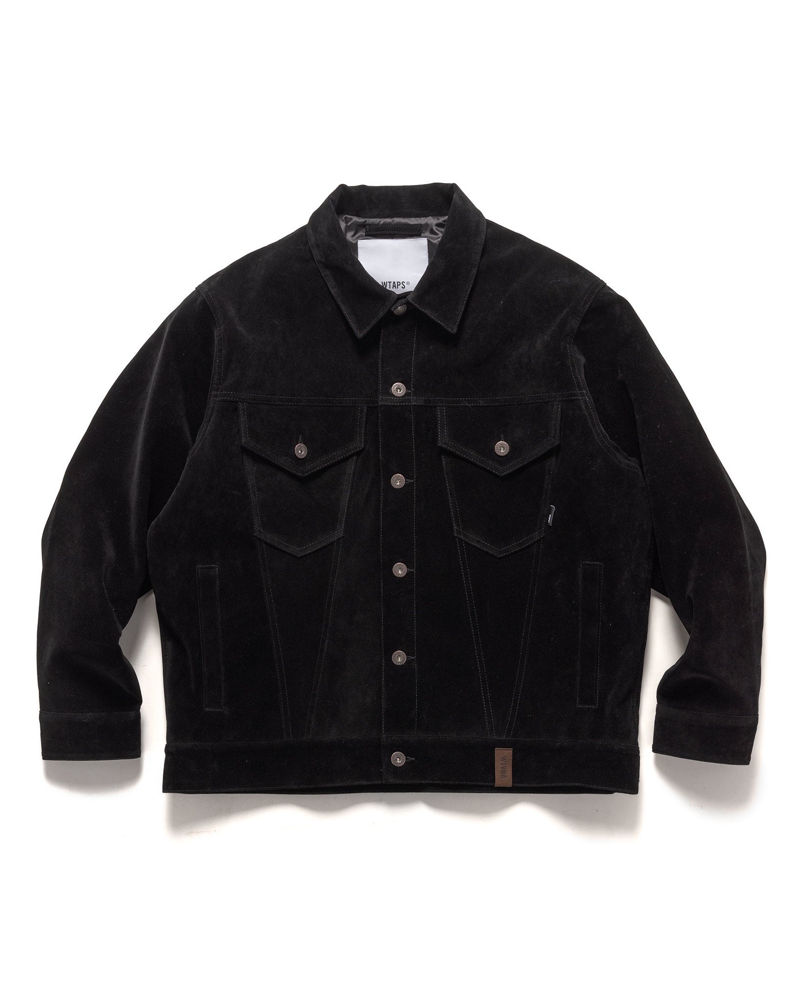 WTAPS presents a reimagined classic trucker jacket crafted from an original synthetic suede that’s soft and smooth to the touch. Lined with ECOUSE taffeta made from recycled materials, it offers comfort with a sustainable edge. Functional details include symmetrical handwarmer pockets, chest patch pockets with button closures, and an adjustable waist for a custom fit. With a relaxed silhouette, this jacket updates a timeless style with a modern aesthetic. DETAILS - 242CWDT-JKM01 - Body: Synthetic Leather - Lining: 100% Polyester - Weatherproof recycled nylon face fabric - Lined with recycled ECOUSE taffeta - Relaxed, slightly cropped fit - Button flap closure chest pockets - Welt hand pockets - Rivet button closure - Rivet button cuffs - Button adjustable waist - Embossed synthetic leather label at hem - Made in Japan