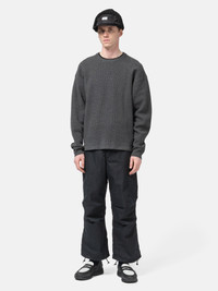 The WTAPS KRS UPR Sweater brings a familiar thermal style into the brand’s utilitarian framework. Knit from a high-gauge cotton-nylon waffle, it offers warmth and durability with a structured, comfortable feel. The relaxed, boxy silhouette and straight hem keep the fit clean and easy to layer. Designed for daily wear, it’s a simple piece shaped by versatility and restraint. DETAILS - 252FZDT-KNM03 - 58% Cotton, 38% Nylon, 4% Spandex - Relaxed fit - Waffle knit - Wide armholes - Ribbed collar and cuffs - Woven brand label at hem - Made in China