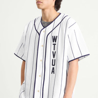 The WTAPS baseball shirt channels classic athletic style through the brand’s signature streetwear lens. Made from custom striped cotton fabric, it features a boxy fit, curved hem and front button closure for a relaxed, vintage-inspired look. A bold printed logo on the chest and woven patch at the hem complete this refined take on a sporty staple. - 100% Cotton - Boxy Fit - Button Closure - Printed Branding - Woven Logo Label - Made in Japan - Product Code: 251ATDT-CSM26-WHT