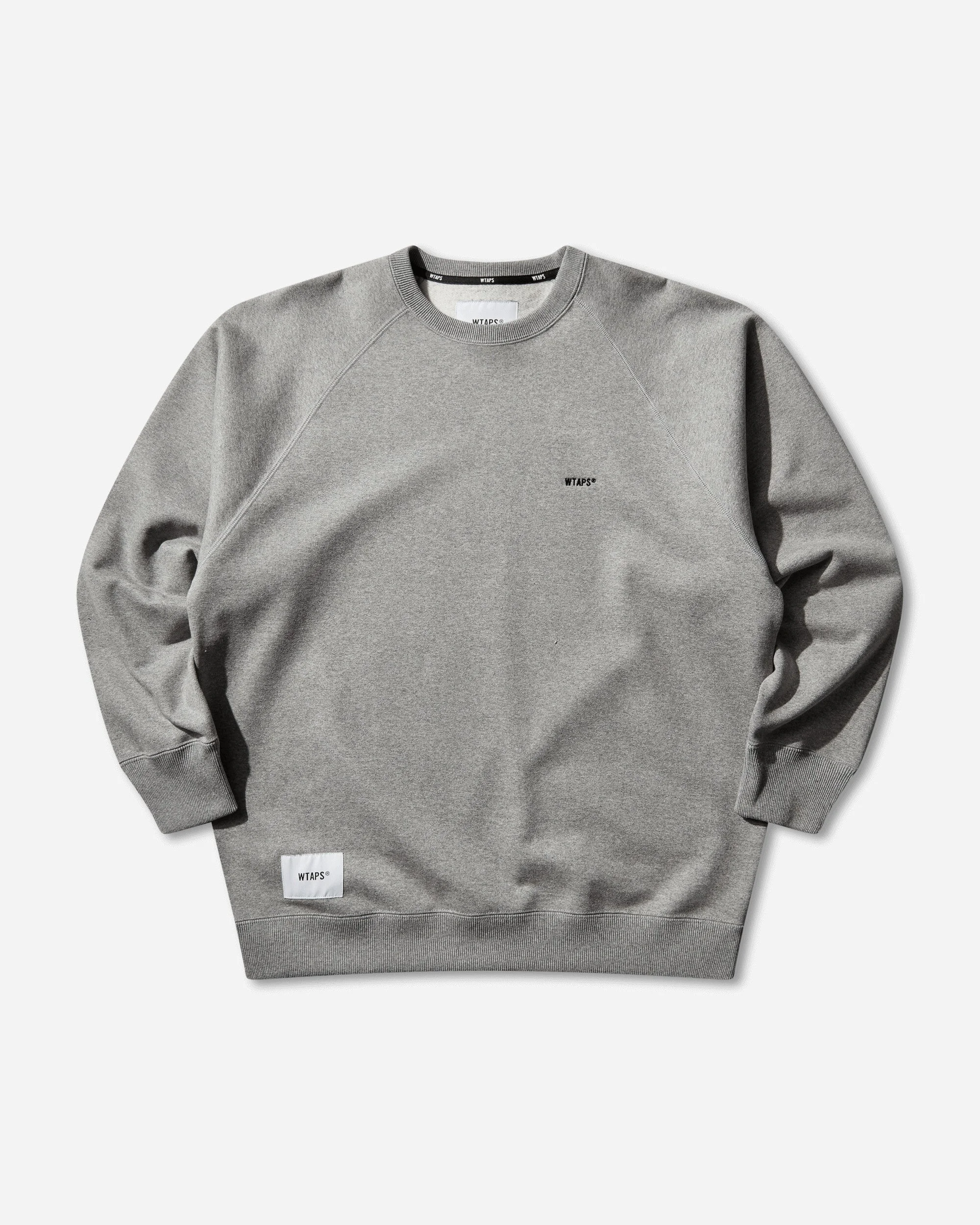 WTAPS SIGN-RGYD Crewneck Sweatshirt Gray This sweatshirt is made from thick, high-density fleece fabric. It features raglan sleeves and a relaxed silhouette with wide armholes. It also features an embroidered motif on the chest. - 100% Cotton - Loose Fit - Raglan Sleeves - Ribbed Collar, Cuffs and Hem - Embroidered Logo at Chest - Woven Logo Patch at Bottom Hem - Made in Japan - Style Code: 252ATDT-CSM05 GRAY