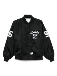 A modern take on the varsity jacket, the WTAPS Team Jacket captures the spirit of uniformed identity with a distinctly Tokyo edge. Crafted from a smooth nylon twill with a subtle sheen, it balances athletic roots with street sensibility. A quilted lining in WTAPS’ signature W-stitch pattern offers lightweight warmth and structure without bulk. DETAILS - 251TQDT-JKM02 - 100% nylon - Relaxed fit - Quilted W-stitch lining - Ribbed collar, cuffs, and hem - Snap button front closure - Welted hand pockets - Interior welt pocket - Embroidered chest motif - Applique details on back and sleeves - Made in Japan