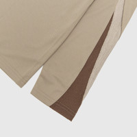 - EP08SL01-2BR - Brown - 100% Polyester - Asymmetrical paneling - Mesh panel on the sleeve - Back right seam detailing - Loose fit