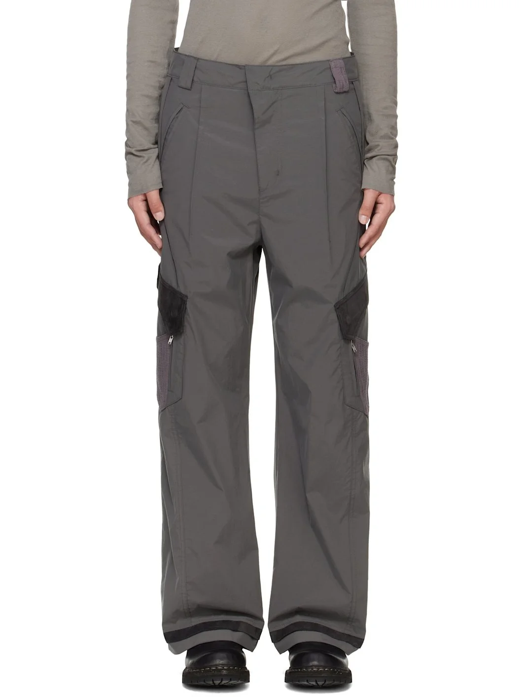 Nylon taffeta trousers. Plain-woven cotton and suede trim throughout. · Paneled construction · Belt loops · Cobrax™ button closure at waistband · Four-pocket styling · Zip fly · Tucks and darts at front and back · Patch, flap, and zip pocket at outseams · Locker loop at back waistband Supplier color: Charcoal Body: 100% nylon. Trim 1: 100% leather. Trim 2: 100% cotton. Made in South Korea 251260M188005