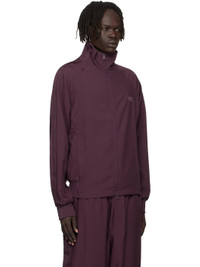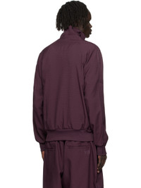 Recycled polyester twill track jacket. · Stand collar · Two-way zip closure · Logo bonded at chest · Zip pockets at front · Rib-knit hem and cuffs · Raglan sleeves · Stripe appliques at sleeve Supplier color: Shadow maroon 100% recycled polyester. Made in Viet Nam 252138M180015