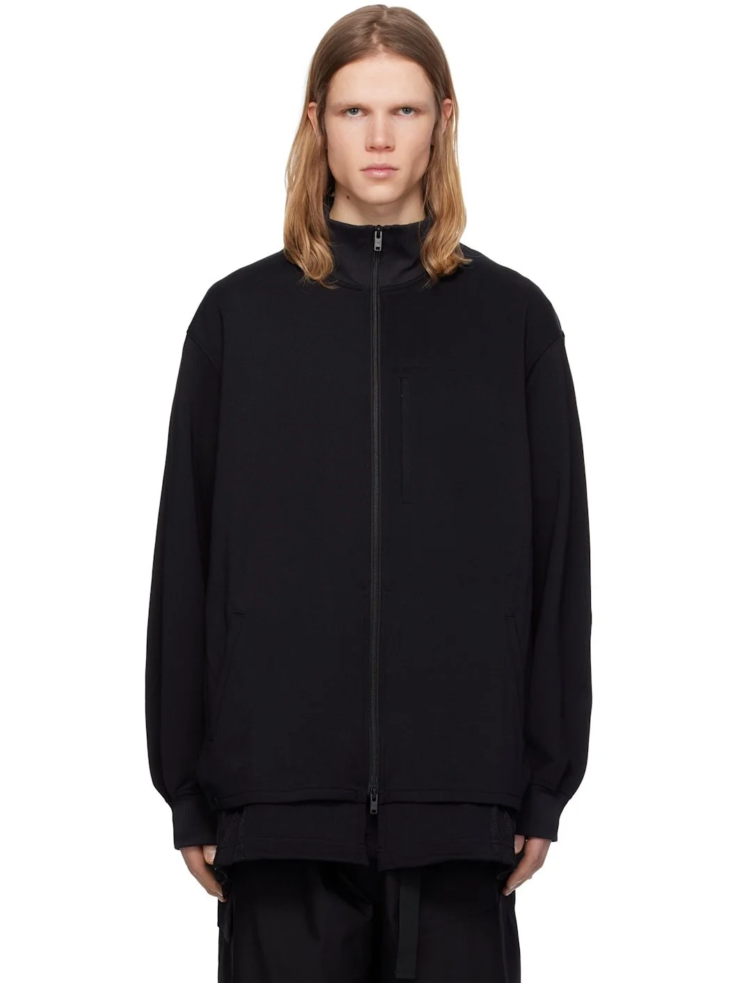 Nylon jersey jacket. - Rib-knit stand collar and cuffs - Two-way zip closure - Zip pocket at chest - Welt pocket - Press-stud panels at front hem - Mesh stripes at side seams - Logo bonded at back collar - Unlined Supplier color: Black