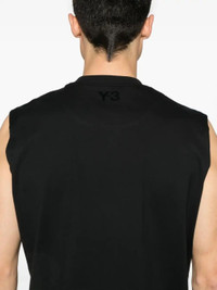 black crew neck sleeveless two side slit pockets logo print to the rear Size & Fit Model Measurements: Height: 1.86 m Bust/Chest: 95.0 cm Hips: 92.0 cm Waist: 75.0 cm Model wears size L Fabric and Care Designer Style ID: JN4904 Designer Colour: BLACK NOIR Composition: Cotton 100% Washing instructions: Machine Wash Made in Thailand