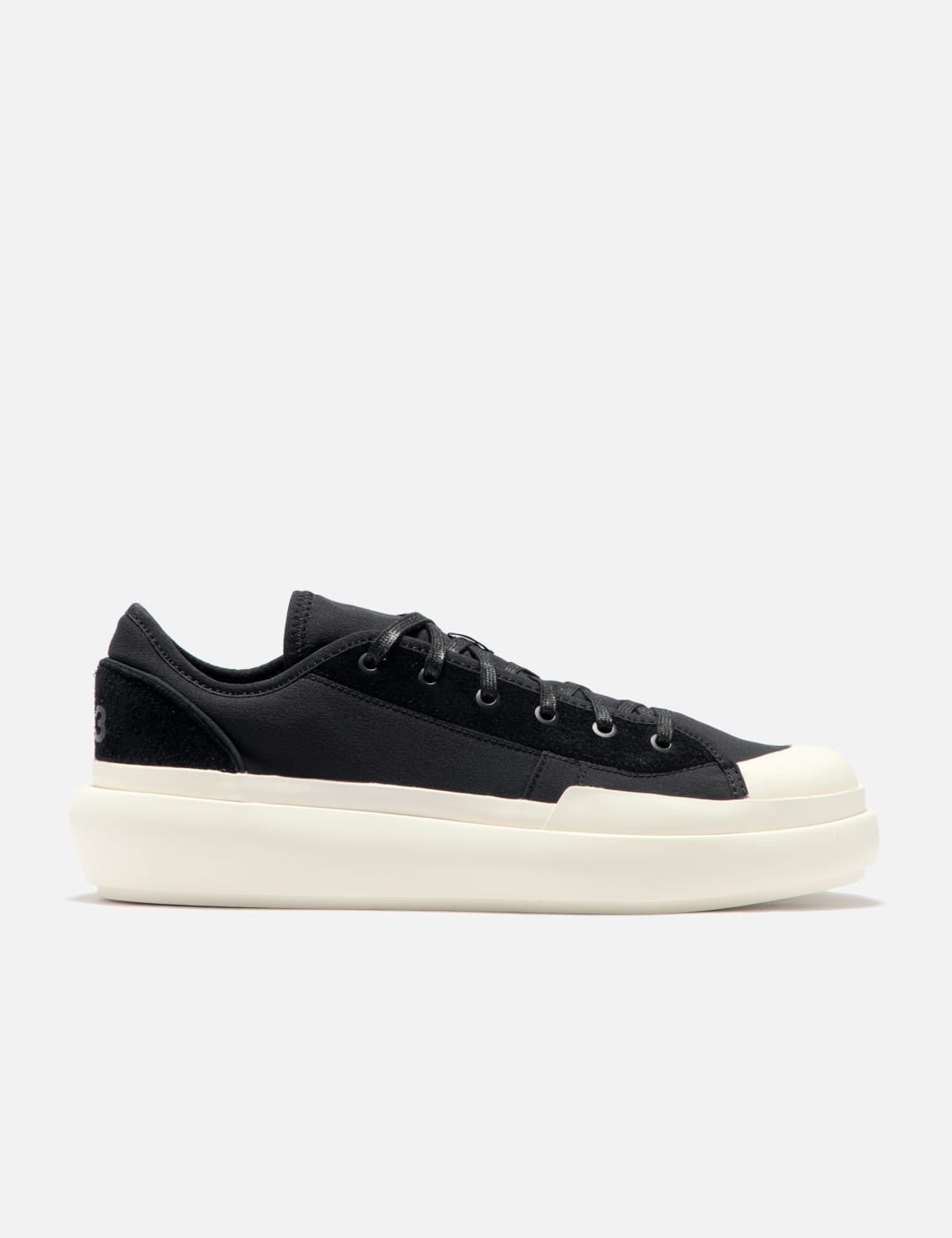 - Y-3 - Y-3 Ajatu Court Low Sneakers - Round rubber cap toe - Lace-up closure - Woven textile and leather upper - Leather and suede lining - Tonal logo detail to the heel counter - Rubber outsole - Color: Black/Off White - Material: 100% Textile, 100% Leather; 100% Rubber - See more Sneakers and Shoes