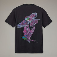 A graphic tee by Y-3. An everyday essential with a Y-3 edge, the Y-3 Graphic Short Sleeve Tee helps us imagine the ultraviolet color spectrum that's invisible to the human eye but can be seen by birds. A graphic on the back shows a vivid lilac-breasted roller in mid-flight. The tee has a loose fit that drapes you in soft organic cotton. Details - Loose fit - Ribbed round neck - 100% cotton - Y-3 logo - Imported - Product code: IW2472 - Product color: Black