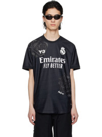Quick-drying HEAT.RDY recycled polyester jersey T-shirt. Perforated detailing throughout. · Jacquard rib knit crewneck and cuffs · Logo, graphic, and text bonded at front · Floral graphics printed at front and back · Rubberized logo patch at front hem Part of the Y-3 x Real Madrid collaboration. Supplier color: Black