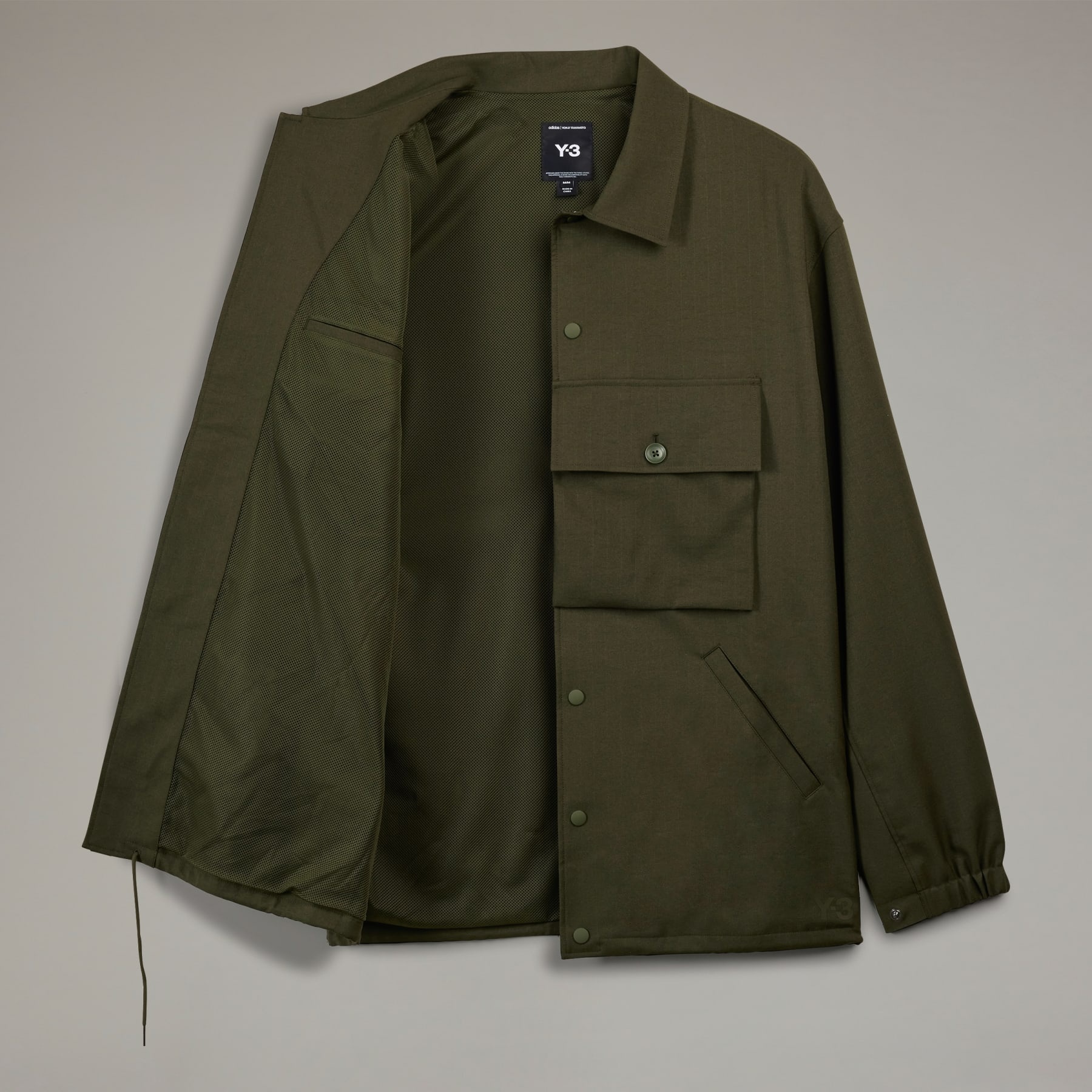 A coach jacket designed in the Y-3 aesthetic. Rooted in sportswear, the classic coach jacket now decidedly takes its place on the streets. This edition by Y-3 levels up the look in a twill fabric cut with an oversized pocket on one side, offset by side pockets positioned at an angle on both sides. Elastic cuffs plus an adjustable waist draw in the silhouette. Pop the collar up or let it lay flat. Details - Regular fit - Button front closure - 100% polyester (recycled) - Side pockets - Front pocket with button closure - Y-3 logo - Drawcord-adjustable waist - Elastic cuffs with button closure - Imported - Product code: JE3416 - Product color: Night Cargo