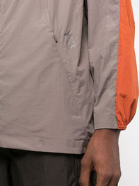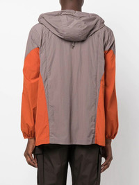colour-block hooded jacket grey/ orange recycled materials toggle fastening front zip fastening long sleeves straight hem Imported Composition Recycled Polyester 100%, Polyamide 100% SIZE & FIT Model measurements Height 6 ft 2 in(1.88 m) Bust/Chest 36.61 in(93 cm) Hips 35.82 in(91 cm) Waist 27.95 in(71 cm) FittingInformation This piece fits true to size. We recommend you get your regular size Cut for a loose fit Made with a lightweight non-stretch fabric Washing instructions Machine Wash