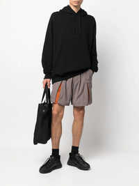 colour-block track shorts gunmetal grey/orange recycled polyester colour-block design decorative zip detailing elasticated waistband two side slit pockets Imported Composition Polyamide 100%, Recycled Polyester 100% SIZE & FIT Model measurements Height 6 ft 1 in(1.85 m) Bust/Chest 35.82 in(91 cm) Hips 37.79 in(96 cm) Waist 29.13 in(74 cm) FittingInformation This piece fits true to size. We recommend you get your regular size Designed for a slim fit at the waist and loose over the leg Made with a lightweight non-stretch fabric Washing instructions Machine Wash