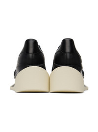 Low-top grained leather sneakers in black. · Textured rubber cap toe · Lace-up closure · Padded collar · Logo embossed at outer side · Signature serrated stripes at sides · Perforated detailing at sides · EVA foam rubber sculptural platform midsole · TPU cutout at midsole · Treaded rubber sole · Platform: H2.5" Supplier color: Black/black/Cream white