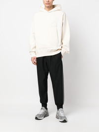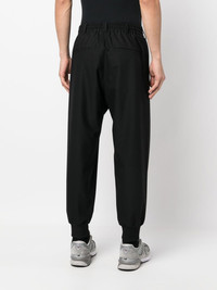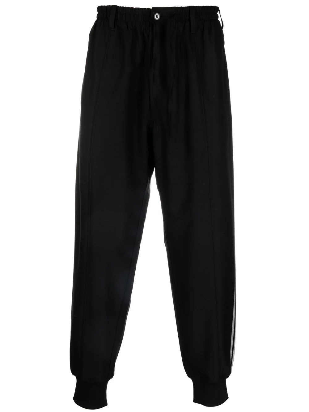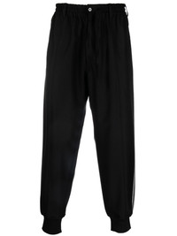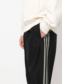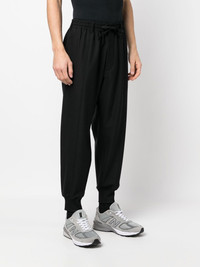 drawstring tapered track pants Highlights - Black - Cotton-wool blend - Side stripe detailing - Drawstring fastening waist - Two side inset pockets - Two rear jetted pockets - Tapered leg Imported Composition Lining: Cotton 100%, Polyamide 98%, Elastane 2% Outer: Wool 57%, Recycled Polyester 38%, Elastane 5% SIZE & FIT Model measurements Height 6 ft 1 in(1.85 m) Bust/Chest 35.82 in(91 cm) Hips 37.79 in(96 cm) Waist 29.13 in(74 cm) Measurement FRONT RISE 14.56 in(37 cm) INSIDE LEG 28.74 in(73 cm) WAIST 37.79 in(96 cm) Outside Leg 40.55 in(103 cm) FittingInformation This piece fits true to size. We recommend you get your regular size Designed to be loose over the leg with a fitted waist and hem Made with a mid-weight stretch fabric Washing instructions Dry Clean Only