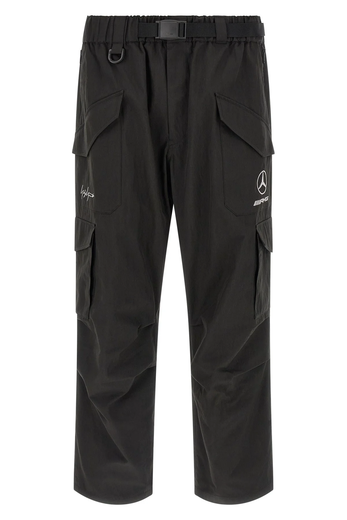 cod. KR2378BLACK Y-3 x Mercedes AMG PETRONAS Formula One 'F1 Cargo' pants in cotton blend with embroidery on the front and back, cargo style with pockets, wide tapered leg, pinch on the knees, elastic waistband, front zip and snap button closure, integrated belt with tuc closure. Color: Black Size & Fit: true to size fit Composition: 56% cotton, 44% polyamide Made in: China