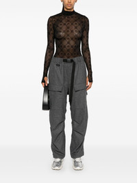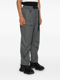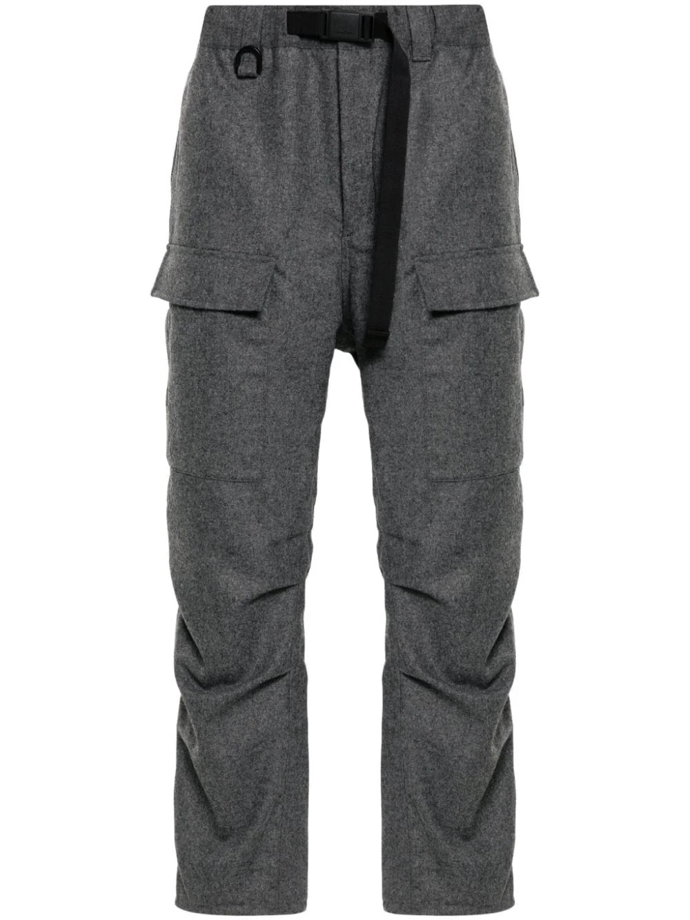 flannel cargo trousers Highlights - Grey - Recycled polyester blend - Flannel - Melange effect - Mid-rise - Concealed front fastening - Elasticated waistband - Front buckle fastening - Belt loops - D-ring finding - Two side slit pockets - Multiple cargo pockets - Two side zip-fastening pockets - Logo print to the side - Two rear welt pockets - Tapered leg - Drawstring hem - When buying this unisex item, keep in mind that it is graded in standard men's sizing. Imported Composition Lining: Recycled Polyester 100%, Cotton 100% Outer: Polyester 60%, Wool 40% SIZE & FIT Model measurements Height 5 ft 10 in(1.77 m) Bust/Chest 31.88 in(81 cm) Hips 36.22 in(92 cm) Waist 24.01 in(61 cm) FittingInformation This piece is unisex and is designed for a tapered-leg, whether you usually select women's or men's sizes The belt offers adjustability for fitted preferences Made from a midweight non-stretch fabric