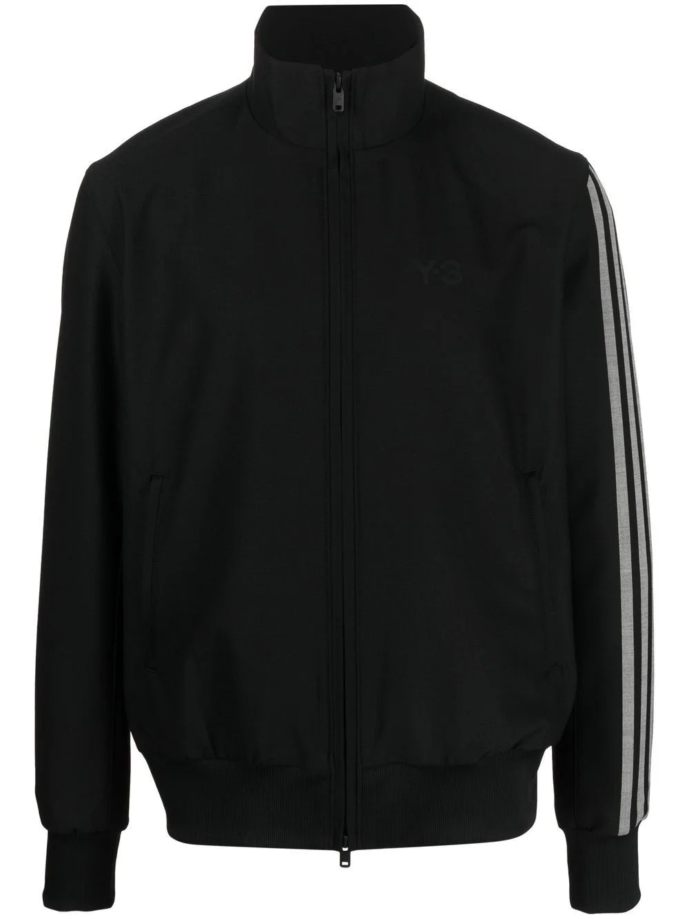 funnel neck zip-up track jacket Highlights - Black/grey - Wool blend - Signature 3-stripes logo - Funnel neck - Front zip fastening - Long sleeves - When buying this unisex item, keep in mind that it is graded in standard men's sizing. Imported Composition Wool 57%, Recycled Polyester 38%, Elastane 5% SIZE & FIT Model measurements Height 5 ft 10 in(1.78 m) Bust/Chest 33.07 in(84 cm) Hips 35.82 in(91 cm) Waist 25.98 in(66 cm) Measurement CHEST 45.66 in(116 cm) SLEEVE LENGTH 26.77 in(68 cm) HIPS 37.79 in(96 cm) LENGTH 26.77 in(68 cm) WAIST 45.27 in(115 cm) FittingInformation This piece is unisex. Please take care when selecting your size Cut for a relaxed fit for both men and women Made with a mid-weight fabric Washing instructions Dry Clean Only