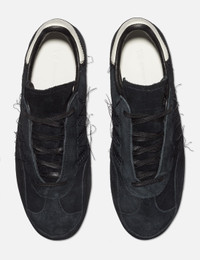 - Y-3 - Y-3 Gazelle - Suede upper with overlays - Signature three stripes on the sides - 'Yohiji Yamamoto' wordmark on the sides - Branded leather heel tab - Loose unfinished thread details - Foxing tape around the outsole - Tonal stitching - Rubber outsole with leather details - Lace-up closure - Color: Black - Material: Suede, Leather, Rubber - See more Sneakers and Shoes
