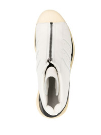 Gendo Pro cut-out boots Revealing Y-3's avant-garde take on footwear, the Gendo Pro 3s are defined by their bold cut-out sole reminiscent of ice-skating boots. Made from smooth leather, the pair is emblazoned with a signature 3-Stripe motif at the side. Highlights - White/black/yellow - Calf leather - Smooth grain - Signature 3-stripes logo - Silver-tone hardware - Perforated detailing - Tonal stitching - Logo print at the sole - Front zip fastening - Round toe - Rubber toecap - Eva midsole - Branded leather insole - Faux-leather outsole - This piece comes complete with a protective dust bag. Imported Composition Sole: Rubber 100% Outer: Calf Leather 100% Lining: Calf Leather 100% SIZE & FIT Measurement CIRCUMFERENCE 8.66 in(22 cm) HEEL 1.96 in(5 cm) HEIGHT 4.52 in(11.5 cm) PLATFORM 1.57 in(4 cm)