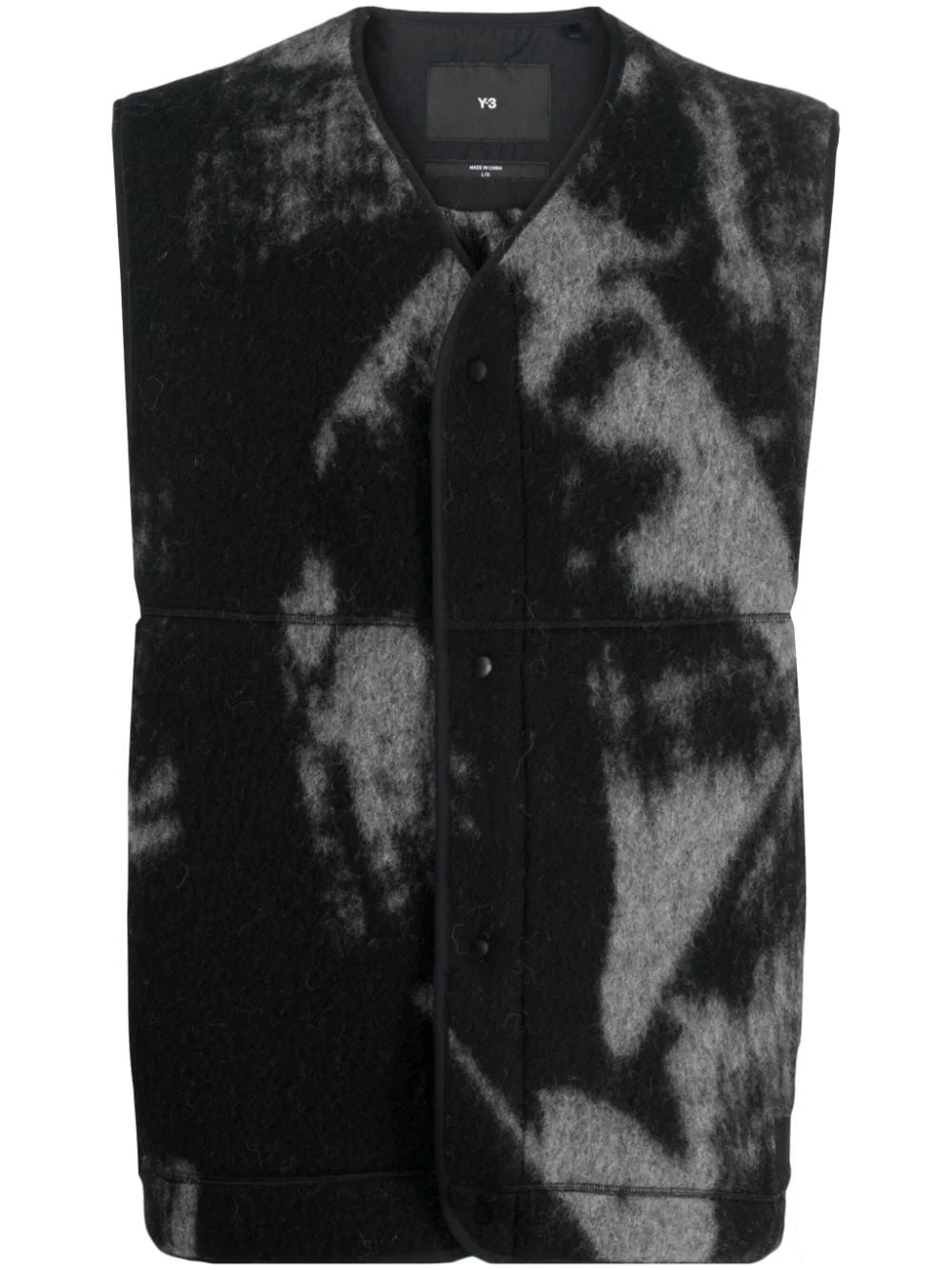 graphic-print wool-blend gilet Highlights - Black/heather grey - Wool blend - Felted - Abstract pattern print - Logo patch to the front - V-neck - Front press-stud fastening - Side button fastening - Sleeveless - Two side inset pockets - Straight hem Imported Composition Wool 66%, Polyester 15%, Polyacrylic 11%, Polyamide 8% SIZE & FIT Model measurements Height 6 ft 1 in(1.86 m) Bust/Chest 37.4 in(95 cm) Hips 34.64 in(88 cm) Waist 29.13 in(74 cm) FittingInformation Designed for a boxy fit, intended for a loose fit throughout Made from a midweight non-stretch fabric This piece fits true to size – take your usual size