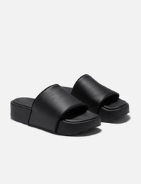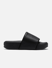- Y-3 - Y-3 Slides - Leather upper - Slip-on design - Platform heel - Branding at insole and heel - Rubber outsole - Color: Black - Material: Leather, Rubber - See more Sandals and Shoes