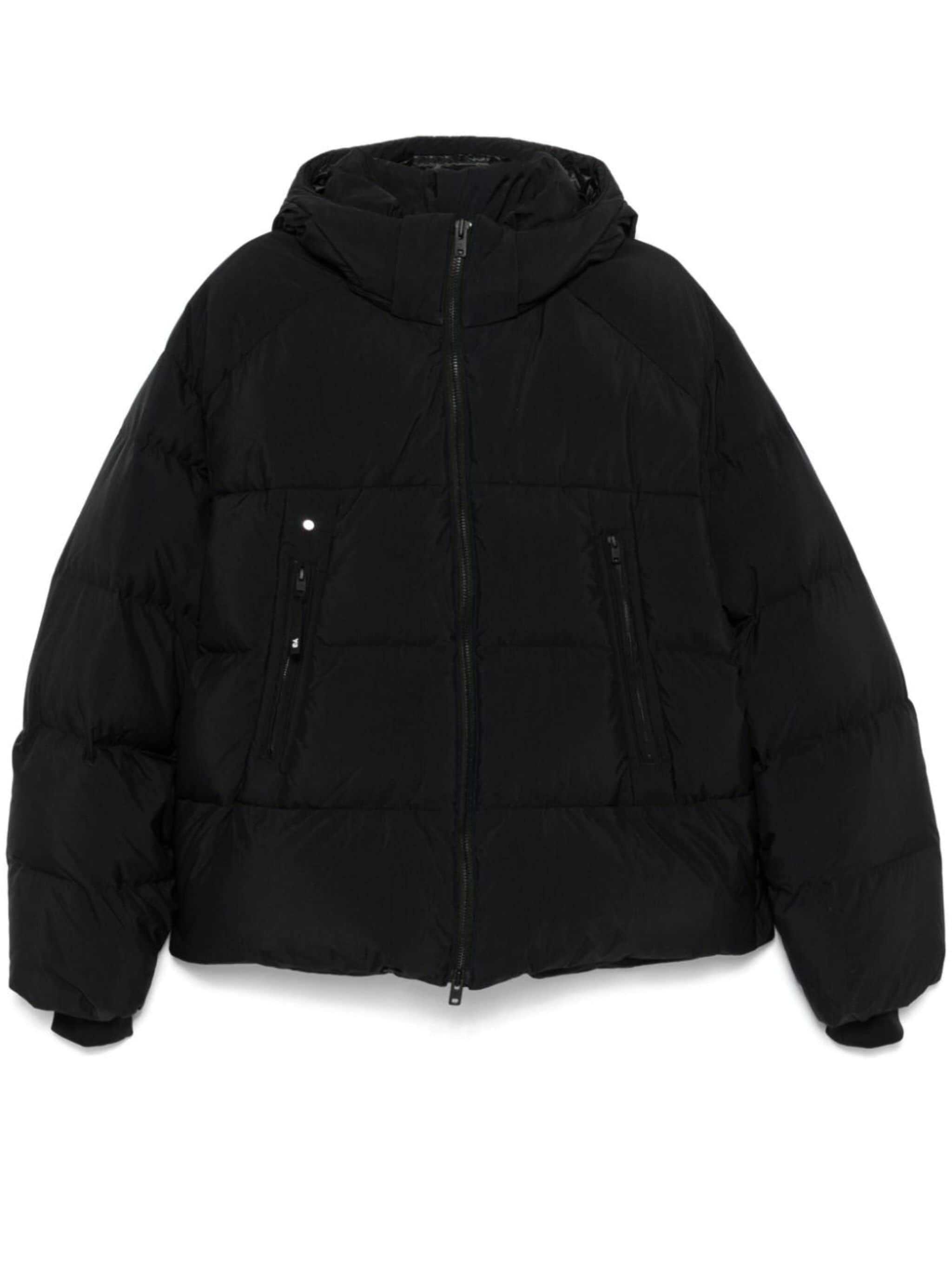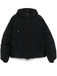 black duck down signature PrimaLoft® padding insulated design quilted front two-way zip fastening drawstring hood stand-up collar long sleeves ribbed cuffs front zip fastening pockets full lining straight hem We've partnered with Good On You — an independent agency that rates how brands perform in relation to their impact on the planet, people and animals, with a multi-criteria rating simplified to a five points scale. In order to be awarded our conscious label, larger brands need to score a minimum of four out of five ('Good'), while smaller brands must score at least three out of five ('It's A Start'). This item comes from a brand rated three out of five ('It's A Start') by Good on You at the time it was added on FARFETCH. Please note, this is a brand-level rating and does not guarantee that this product is made with conscious materials. Learn more about what makes a product Conscious on our Conscious Criteria page Size & Fit Model Measurements: Bust: 0cm Height: 0cm Hips: 0cm Waist: 0cm Fabric and Care Designer Style ID: IW0067 Designer Colour: BLACK Composition: Outer: Polyamide 96%, Elastane 4%, Recycled polyamide 100%, Recycled polyamide 100%; Lining: Polyamide 100%, Recycled polyester 100%, Duck down 90%, Feather 10% Washing instructions: Machine Wash Made in Indonesia
