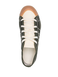 logo-patch sneakers Highlights - Forest green/ecru - Plain-weave canvas - Colour-block panelled design - Decorative stitching - Frayed detailing - Logo patch to the rear - Rubber toecap - Round toe - Front lace-up fastening - Branded leather insole - Flat rubber sole Made in Italy Composition Outer: Fabric 100% Lining: Fabric 100%, Calf Leather 100% Sole: Rubber 100% SIZE & FIT Measurement HEEL 0.98 in(2.5 cm) Sole height 0.78 in(2 cm)