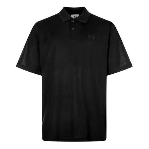 Men's Y-3 Casual Solid Color Cotton Polo Shirt Black FN3355