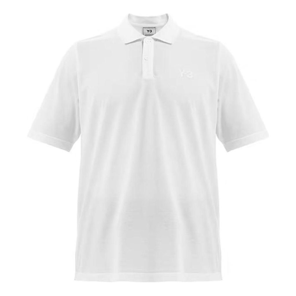 Men's Y-3 Solid Color Logo Polo Shirt White FN3356
