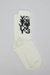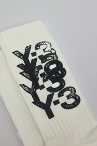 SKU: 154561 Brand style: KT3210 Socks with bold black printed logo on a white background, featuring a structured ribbed pattern. These socks are ideal for casual wear and add a sporty touch to any outfit. - Bold black logo - White background - Ribbed texture - Overlapping design - Crew length Materials: Color: Cwhite