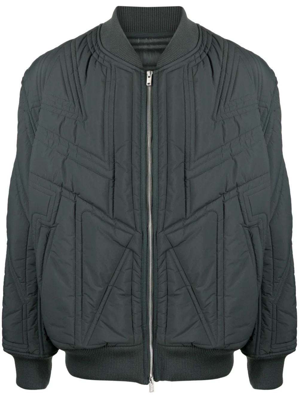 quilted bomber jacket Blending an utilitarian aesthetic with the representation of speed, this Y-3 bomber jacket is representative of the brand's penchant for functionality. The quilted outer draws inspiration from adidas' iconic Aloxe tracksuit, while the brand's PrimaLoft® insulation locks in heat. Highlights - Green - Quilted - Primaloft® insulation - Baseball collar - Front two-way zip fastening - Long sleeves - Two side welt pockets - Ribbed edge - Straight hem Imported Composition Outer: Polyamide 100%, Polyacrylic 58%, Wool 28%, Recycled Polyester 10%, Recycled Elastane 4% Lining: Polyester 100% SIZE & FIT Model measurements Height 6 ft 2 in(1.87 m) Bust/Chest 35.82 in(91 cm) Hips 35.43 in(90 cm) Waist 27.95 in(71 cm) Washing instructions Dry Clean Only