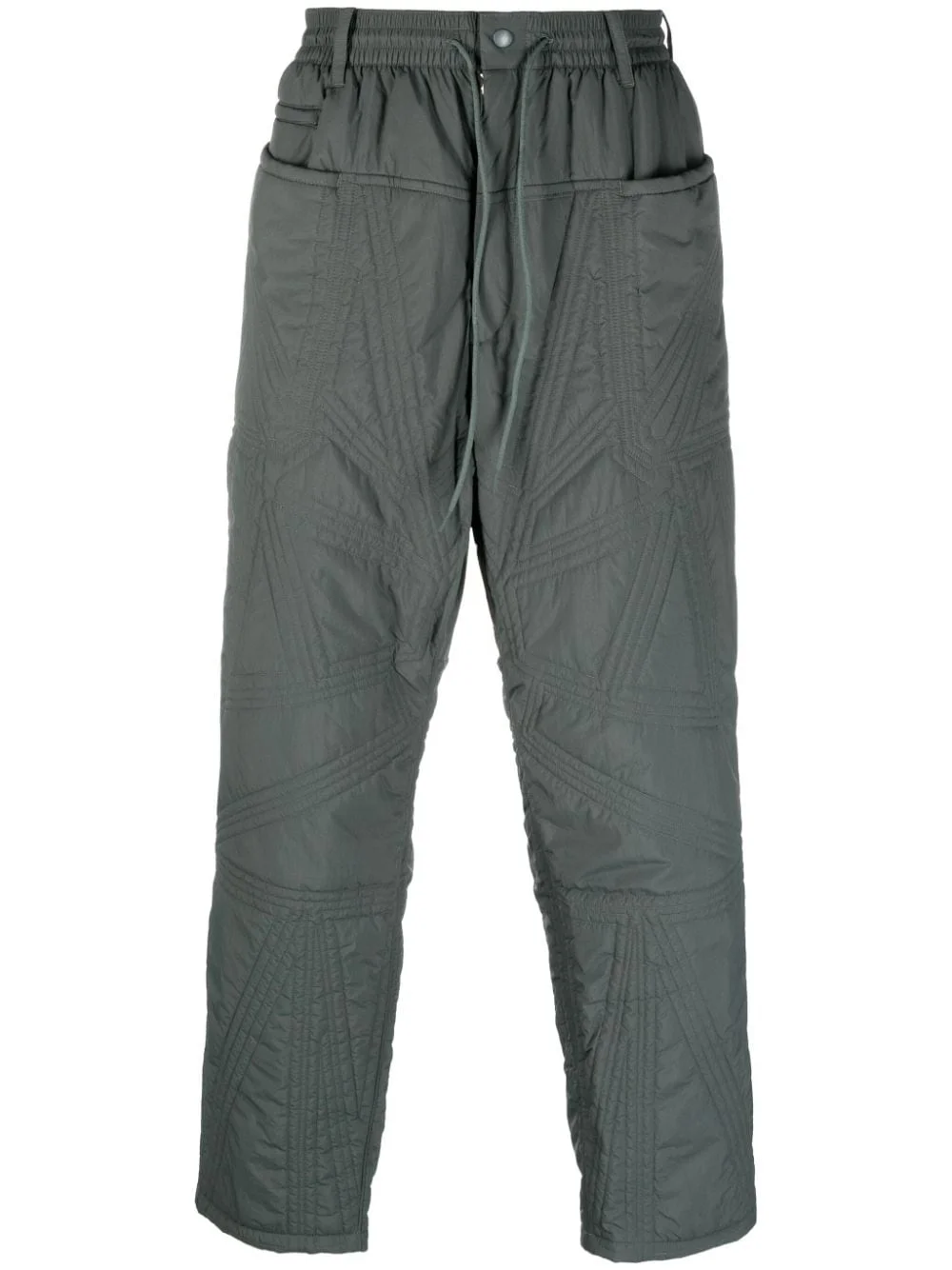 quilted drawstring-waist trousers Highlights - Dark green - Cotton - Quilted - Elasticated drawstring waistband - Belt loops - Front button and zip fastening - Side patch pockets - Two rear jetted pockets Imported Composition Lining: Polyamide 100%, Cotton 100%, Recycled Polyester 100% Outer: Polyamide 100% SIZE & FIT Model measurements Height 6 ft 2 in(1.87 m) Bust/Chest 35.82 in(91 cm) Hips 35.43 in(90 cm) Waist 27.95 in(71 cm) FittingInformation Designed for a tapered leg, offering a loose unrestricted fit over the leg with a closer fit towards the ankle Adjust this piece’s waistband to your preference using the drawstring Made from a padded non-stretch fabric, giving it no natural elasticity This piece fits true to size – take your usual size