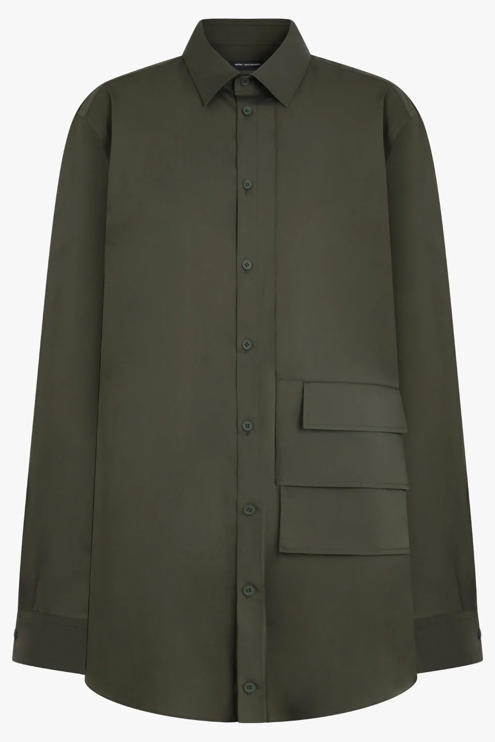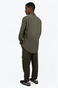 - Fabrication: - 73% cotton, 23% polyamide, 4% elastane - Relaxed fit - Button front with fold-down collar - Front double flap pockets - Adjustable cuffs - Y-3 tonal satin heat transfer logo Measurements XS: Bust 106cm, Waist 106cm, Hip 106cm, Length 88cm S: Bust 110cm, Waist 110cm, Hip 110cm, Length 88cm M: Bust 116cm, Waist 116cm, Hip 116cm, Length 88cm L: Bust 126cm, Waist 126cm, Hip 126cm, Length 88cm