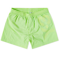 Get summer-ready and make a statement by the pool in these bright green swim shorts from Y-3. Crafted from sleek nylon, they feature a zip pocket for your essentials and are complete with a bold tonal logo at the thigh. - 100% Nylon - Elasticated Waist - Zip Back Pocket - Printed Branding
