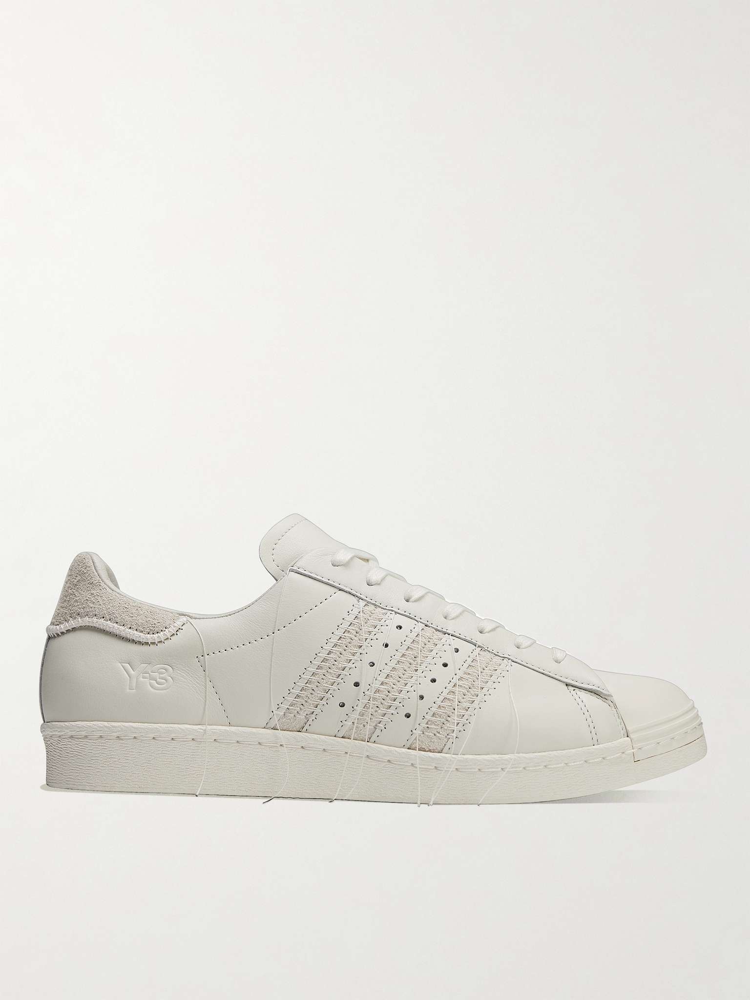 Under Yohji Yamamoto, Y-3 reimagines classic sportswear with an avant-garde twist. These modern 'Superstar' sneakers are made from supple leather and suede with smooth rounded toe caps in lieu of the classic rubber shell ones. The signature '3-Stripes' are detailed with decorative stitching and hanging threads. Size & Fit - Off-white leather - Lace-up - Designer colour: Off-White - Style number: ID4122 Details & Care - Off-white leather and suede - Lace-up - Style number: ID4122